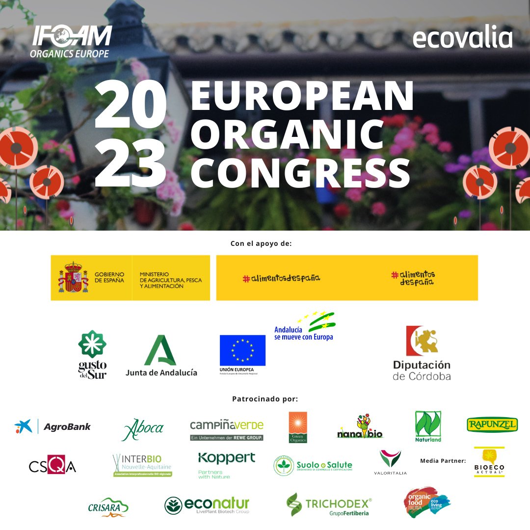 El Congreso cuenta con el apoyo institucional del Ministerio de Agricultura, Pesca y Alimentación del Gobierno de España; la Consejería de Agricultura, Pesca, Agua y Desarrollo Rural de Andalucía y de la Diputación de Córdoba. Además, tiene el patrocinio de: Agrobank; Aboca; Campiña Verde; Green Organics; NaNaBio; Naturland; Rapunzel; CSQA; Interbio; Koppert; Suolo e Salute; Valoritalia; Crisara; Econatur; Trichodex y Organic Food Iberia, además de Bio Eco Actual como media partner.