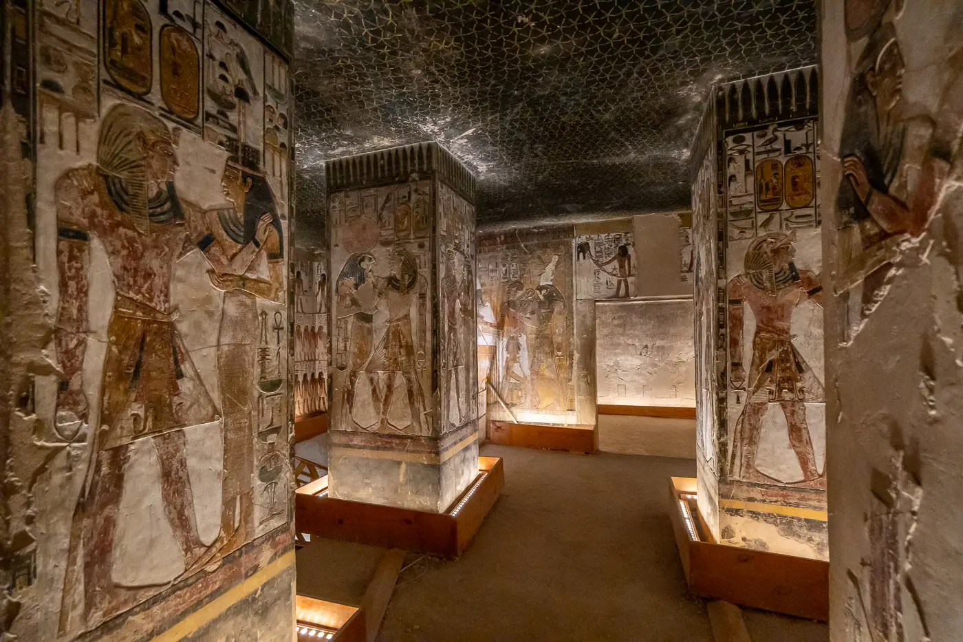 Os dejo nuestra impresión en el Valle de los Reyes. Primera tumba que visitamos, la de Ramses V/VI, nos viene a la cabeza al entrar…. WTF!. Una tumba con más de 4.000 años dándote codazos porque casualmente coincidimos con el horario de cruceros y autobuses que venían desde Hurgada… Las agencias, además de ver y coincidir en los mismos sitios, por norma general, solo visitan 3 tumbas, y como van con el tiempo justo, tienen que salir por “patas”, ya que desde allí van rumbo a Deir el-Bahari, que si no, no les da tiempo a pasar por la tienda de cerámica o de alfombras…. Cuando vas por libre, esperas 30min o una hora si has coincidido, y ves las tumbas solo… y no solo eso, ves todas las que quieras, si pagas claro. Nosotros vimos un total de 12 prácticamente solos. ¡Es sencillamente una experiencia mágica!.